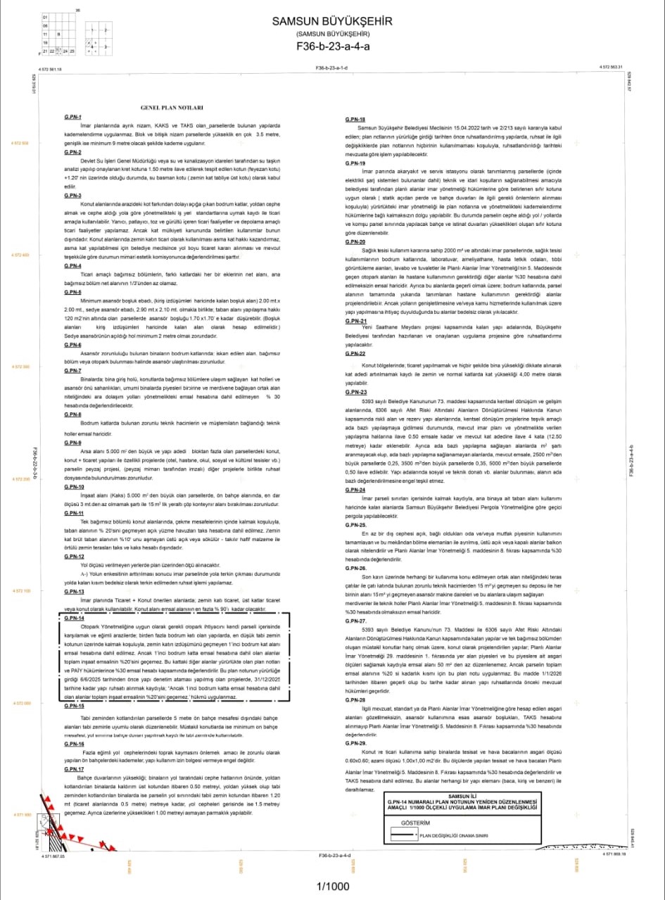 SAMSUN BÜYÜKŞEHİR BELEDİYESİ İMAR PLAN NOTLARI